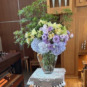 渋谷 聖ヶ丘教会 礼拝堂 今日の装花。 猛暑が続いているけど、「紫陽花」が涼感を誘ってくれる。