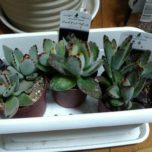 カランコエ4種 フミリス、仙人の舞 ジャイアントラビット、 クイーンローズパリ(多分) 見た目、違う品種に見えますが 皆んな同じ仲間のカランコエ💕 肉厚なのは一緒です😊💕
