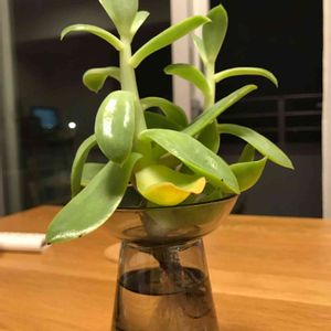 友人からのプレゼント。 最近私が植物にハマってるって事でのチョイスですが、オシャレすぎて一瞬育て方がイメージできず、土に植えかえれば良いのかなどと考えつつ、もしやと思い多肉、水栽培などと検索しましたところ、まさか多肉植物に水栽培なんてもんがあったとは!! というわけで早速水を入れて飾ってみた! 涼しげでいいかんじ! ところで名前が分からず、ご存知の方教えて下さい。