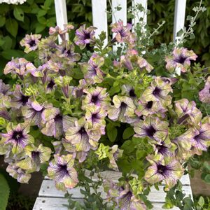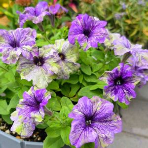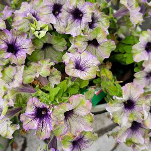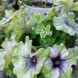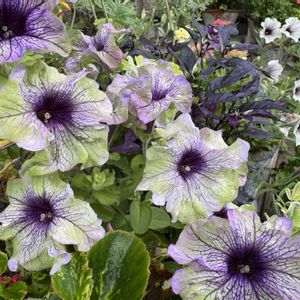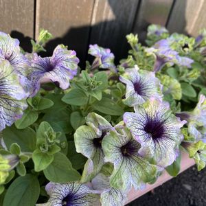 ペチュニア アマゾナスプラムコカトゥー 見切り品100円でゲットした苗。 元気に育ってます。 個性派カラーでお気に入り♡