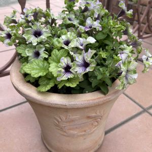 梅雨に入ったのに… 今週は真夏日の予報です🔆(˃͈ દ ˂͈ ٥)💦 切り戻し後咲いてくれました⋆⸜♡⸝⋆ ①ペチュニア アマゾナスプラムコカトゥー ②ペチュニア ピスタチオパフェ