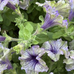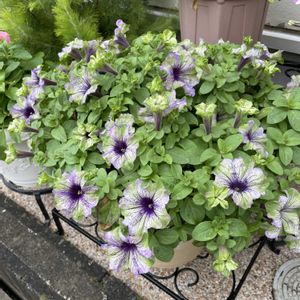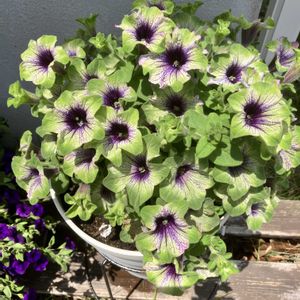 ペチュニア アマゾナス プラムコカトゥー 大好きな色合い💚💜 GW前に ペチュニア、フレンチラベンダー、バニーテール、などで寄せ植えを作り1️⃣、 今だに元気なのは ペチュニア アマゾナス プラムコカトゥー‼️2️⃣3️⃣ 3株なのにモリモリずっと咲いてくれています! 素晴らしい✨