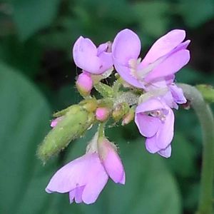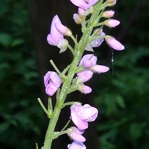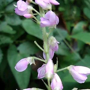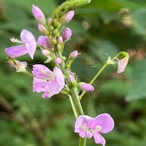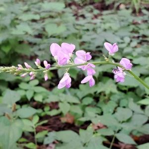 道路沿いに枝を倒す様にしてハギに似た小さな花が咲いていました💜 フジカンゾウでしょうか? 間違っていたら教えてください🙇 <フジカンゾウ>(藤甘草) マメ科ヌスビトハギ属 多年草 別名 フジクサ ヌスビトノアシ 名前は花が藤、葉が甘草に似ることによる