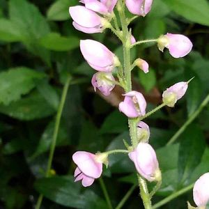 フジカンゾウです。 自然大好き派😘です。相変わらず近所の公園通いです。今日の花は見た通りマメ🫘科の花です。漢字では藤甘草です。葉っぱが藤に似ているので藤は了解です😊。そして草姿が甘草に似ていると言うことらしいのですが???です😂。この花の垂れ下がりが確かに甘草の葉っぱのカーブに似ていると言えばそのように見えない事もありませんが・・・😅。 名前はともかくとしてヌスビトハギ属にしては花が大きく、明るいピンク色なので私は好き❣️です😊。大きなものでは高さが1.5mぐらいになります。