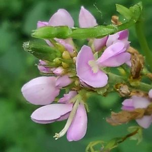 フジカンゾウ(藤甘草) 淡紅色の蝶々の形の花を沢山つけて、ピンクの絨毯のように群生していました😍🎶。花は、ヌスビトハギに似てます。 和名は、花がフジに似て、葉が、薬草の甘草に似ているからだそうです。(北本自然観察公園)