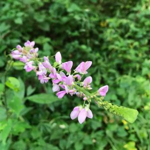 マメ科っぽいお花だけど 大きい葉っぱが、らしくない……? フジカンゾウ マメ科ヌスビトハギ属で 種もヌスビトハギみたいに 盗人の足跡のようになるらしい…🤣 楽しみ♪