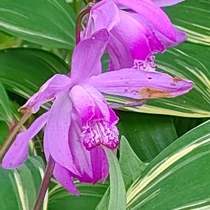 こんばんは🌃 今日も草取り😫 作業中目に止まった花たち ①② あなたはしらん わたしもしらん どっちもシラン💜 ③ 一季咲き 低いところにたくさん咲いてます🌹 ④黒星病に罹ってない健康体ピンク! ⑤ 季節外れのピンクのツバキ 花びらの大きさも形も違う?? 突然変異?! 先祖返り?! 尖り気味の花びらも 面白い😆 ご覧頂きありがとうございますm(_ _)m 明日は☂で草取りなし☺️