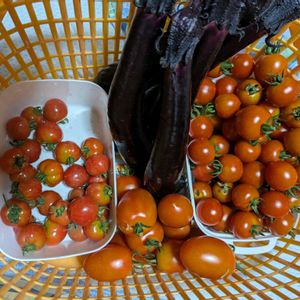 今日の収穫、ミニトマトが、量産態勢になって来ました。