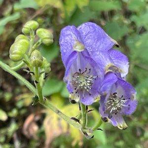 おはようございます🌧️ 今日のお花トリカブト💜 有毒植物として知られて います。 花芽が出る前の葉が ニリンソウに良く似ています。 キンポウゲ科トリカブト属