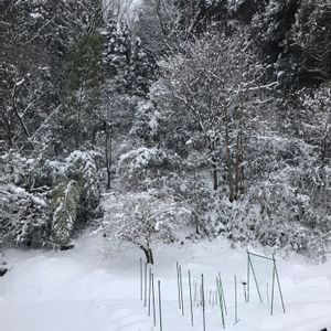積もりました☃️❄️❗️ 畑も真っ白❄️ スナップエンドウ無事かな〜💦? 雑木も雪化粧できれいです✨