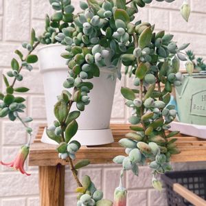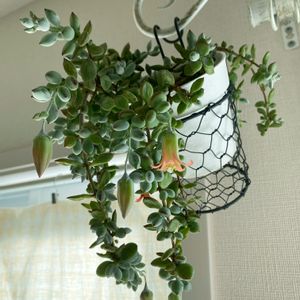 コチレドンペンデンス なかなか増えないと思ったら茎が木質化してました。 増えて貰いたいので吊りばちに挿しました🎵 2投稿目で🙏