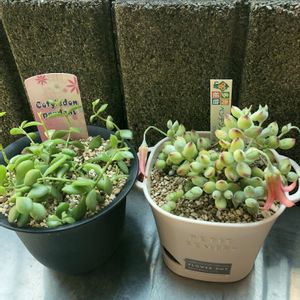 雨ー😭 今日はロピアでひまわり🌻1苗100円に出会えた😍 でも雨で元気ないから写真は次回! ⚪︎コチレドンペンデンスは蕾❤️ 早く咲かないかなーー ⚪︎プラティフィラ 赤さん大きくならないかなー ⚪︎赤さんたーくさん並べました記録🌟