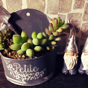 『コチレドンペンデンス』 夏に200円ほどのを購入して、増えるかと思いきや❣️ 半分ほどになってしまい、見た目を変える為に手作り籠に植えかえました。 小さな🐸を見つけました☺️