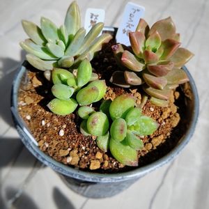 名前を教えて頂いた秋麗、ブロンズ姫、コチレドンペンデンス。根っこ張って欲しいから隙間開けて植え替えてみました。 多肉カワイイ💕