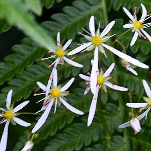 今日のお花、ダイモンジソウ❗ 登山道の脇の水場 暑い日、3時間歩いた後の冷たい水😋 一息ついて脇を見ると白い繊細な花がたくさん🤍🤍🤍