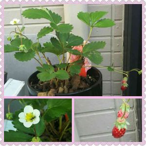 おはようございます。月曜日です。 しゃきっとしなければと、自分に 言い聞かせてます。 今日の一枚は季節はずれのイチゴちゃん です。 花には蟻さんが… 小さい果実ですが、とても甘かったです。✌