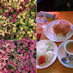 4/3(水)⑥ コメダ珈琲店でどらさんと軽食。エッグバンズおっきい‼️ コメダの周りはオタフク南天🎶