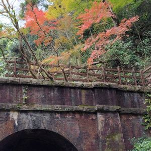 旧国鉄愛岐トンネル群特別公開。 やっと色づき始めた木々が多い中、場所によっては既に綺麗な色になっているモミジも🍁🍁🍁 川沿いなので、水面に映り込んだ景色も🏞️🍁
