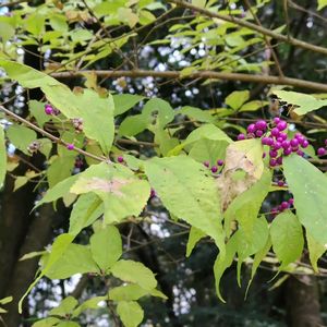 おはようございます😄 今日のお花ムラサキシキブ(紫式部)💜💜 昨日行った定光寺公園の近くに大きな木があり、艶々とした実が沢山生っていました🤗