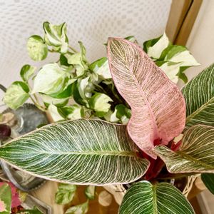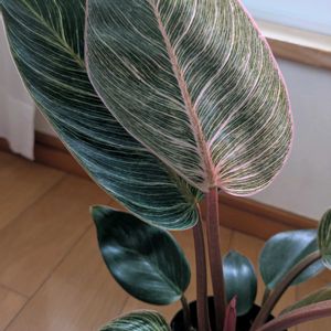 フィロデンドロン・ピンクバーキン 繊細な模様と色合いが大変かわいい⭕️ 一方、初めて植物一緒の秋から冬に突入しようとしており、自分は不安でいっぱいです…