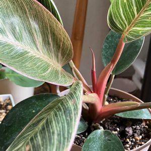 フィロデンドロン ピンクバーキン ①最新のの葉です♪きれい🤩です😍 ②新しい葉が出てきそうな感じ❣️ 楽しみ
