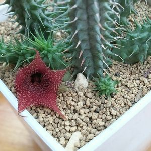 フェルニア属 『 修羅道 』マクロガルパ Huernia macrocarpa ガガイモ開花第2号 修羅道ちゃん窮屈そうに咲いた🌸 冬の間この子は比較的強そうに見えた😊💕 そして、よく増える😁 ニョロニョロいい感じ☺️ 昨日はノンストップ仕事だったので、ヘトヘトに⤵︎😣😣😣⤵︎ 今から皆さんのところ伺います✨😊