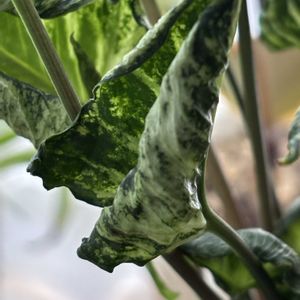 シンゴニウム シュリンクハート モニターで苗をいただきました✨ くしゅっとした葉っぱに おしゃれな斑が入っています🌿 案外横に広がらずに 真っ直ぐ伸びている感じなのでスペースとらないかも?? シンゴニウムやポトスは室内でも元気に過ごせる子なので、お外でガーデニングできない間に楽しめますね♪