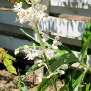 今晩は😄👋 勝手に生えてきた大きめの葉っぱ何だか解らないけどそのままにしておいたらこんな可愛い白い花が咲いたよ~🎶 花ちゃんに教えていただきました~🎶 ヤブミョウガでした🎵