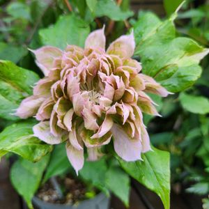 八重咲きクレマチスモニター🌿記録 昨夜の雨で散ってしまったかと心配でしたが少し色褪せただけで、まだ綺麗に咲いてました🌿花保ち良いです🪴