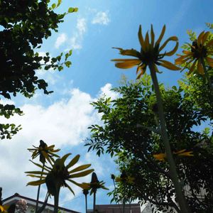 おはようございます ルドベキア マキシマ 昨日と同じ花です。 下から撮ってみました(7月4日撮影)。青空は気持ちいいですね❗。