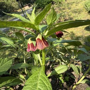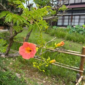 今日のお花🏷️ ノウゼンカツラ 磐梯は 遥けく青し 凌霄花 俳人篠田悌二郎の句碑とともに。 凌霄花は、ノウゼンカツラの和名