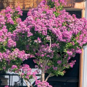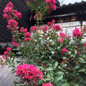赤に近い濃いピンクのサルスベリが咲いてます。 ご近所さんの庭木です。 ウチのはもう少し赤いサルスベリですが…どうやら花芽が付かずに終わりそうな気配。 鉢植え替えてあげなきゃ無理なのかな😂