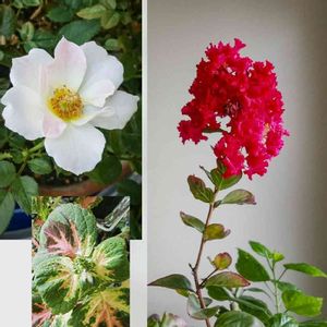 今朝の花たち ミニバラ🌹とサルスベリ コリウスにも蕾が✨
