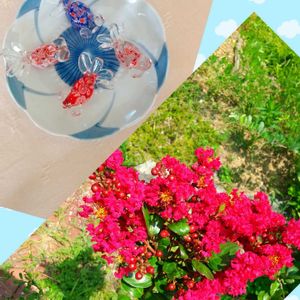 おはようございます🙇 ガラスの金魚さんが涼しげですゥ🎵 赤いサルスベリが真夏を告げて🍀👍️ いい日でありますように🙆