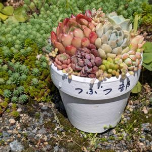 つぶつ部寄せ植えから1ヶ月 セダムがワサオになりました💭 今年は昨日ちょうど曇りだったのでダニ太郎散布しときましたよ