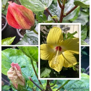 ❊❊2月21日(金)☔️--❊❊ ✻今日咲いている花✻ --1枚目画像-- 2024/4/16に種を蒔いた ハイビスカス イエローバタフライ 「コーラルレモン」①上②下の2株です。 自然交配により種ができました。 両親は囲い画像の様な花が咲くはずなのですが⁉️ どうも花色は両親似ではなさそうです。 ご先祖様似なのかも? 花色はピンクか、赤色になりそう😊🌺 開花まじかとなりました🥰 去年2月頃から交配することを始め、初めての花が咲きます。待ちに待ちました❣️