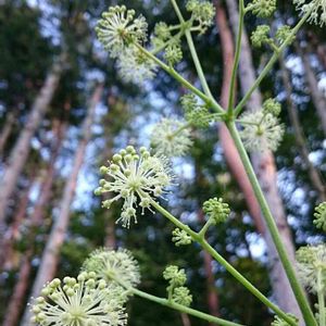 ヤマウド。 ウコギ科タラノキ属。 香りの強い山菜ですが、採られなかったのか、大きな素敵な花を咲かせてました。 11月の連休のめちゃくちゃこんだ甲州街道で、見かけて📷。🚐を降りて撮っても、🚐が進んでなかった😁 花が咲くくらいまで大きくなってしまったら 食用にならず、 ”大きいばかりで役に立たない” と「ウドの大木」と言うけれどこの花は、思っていたよりずっと素敵でした🍀