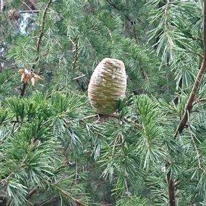 フクロウ🦉 みたいですが、ヒマラヤスギの球果です✨ 花は9月、10月に咲き、この緑の若い実は翌年になりできたもの。そしてあと一年かけて茶色くなるらしいです。知らなかった❗️秋の花の後、冬が二回過ぎてからやっとシダーローズになるのだそうで、、、。長い長い道のりなんですね❗️