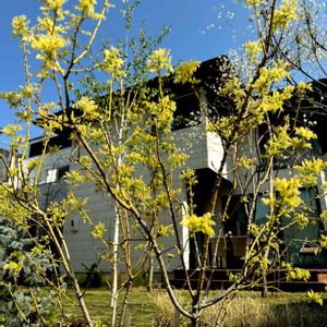 冬枯れの季節でも、この木には関係ないようです😀 この時期に若葉色の葉っぱを輝かせています🤩 「エンジュ ウィンターゴールド」というんですね🧐 なるほど、黄金色にも見えます🏅🥳(農業試験場内にて)
