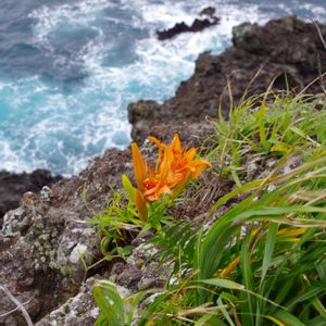 海沿いに群生する (なんだか今日は群生ばっかり) ハマカンゾウ。 ノカンゾウよりオレンジが濃い …気がします。