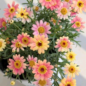 🍑マーガレット スマッシュピーチアイ🍑 咲き始めはクリーム色、その後はピーチ色→濃いピンク色に変わりましたෆ.*・゚ 今年初めてお迎えしましたが、暑さが和らいで来た頃から沢山咲いてきた☺️🩷 上手く冬越し出来るかな〜出来るといいな〜❣️
