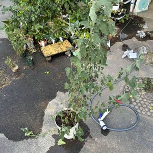 挿し木した子を掘り上げてこの鉢に植えます。 バラのカメオさんとアニソドンティア・マラストロイデスさんです。