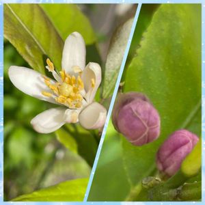 レモン🍋のお花が咲きました。下の方には蕾さん🤗 去年は一個採れました。今年どうかなぁ?🤔
