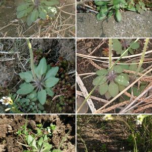 シロイヌナズナ(白犬薺) アブラナ科 シロイヌナズナ属 3~6月 5〜30cm 帰化種 花は白色の十字形花 根生葉はロゼット状で短柄 葉身は倒卵形〜広倒披針形、低鋸歯縁 葉縁は全縁~波状~歯状、先は鈍形 両面に単純毛と2分毛がある 茎葉は無柄 タネツケバナと比べてみると、全体的に細いと思った(茎、花柄•果柄、果実(長角果) ) とても華奢な感じがした 2000年に全ゲノムが解析 モデル生物として世界中で研究に利用されている