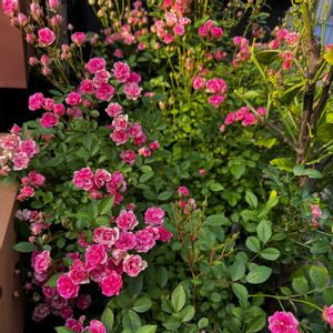 おはよーございます🥰✨ 実家の【つるバラ】🌹 品種はわからないんですよ💦 可愛いピンク🩷の薔薇🌹たくさん咲いていましたよ🌹