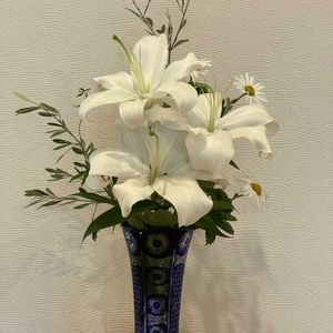百合が素敵 薔薇 一輪 昨日お姉さんに訪問~ 家のオリーブも生けられて(╹◡╹)♡ 🤍