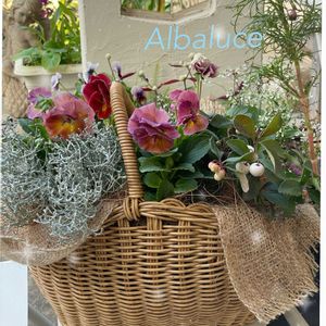 こんにちは♪ 冬のハンギングバスケット 雪の中でもブーケのように映えるよう ヒイラギを選んで作りました 葉牡丹の色変わりも楽しみですネ- 💐💛💐💛💐💛💐💛🤍