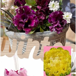 こんにちは♪ 寒さに強い植物でお正月用 寄せ植えを作りましたよ 葉牡丹は ⭐️⭐️黄色を選んで明るくネ💛💛