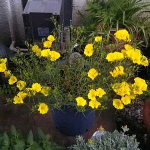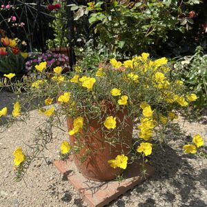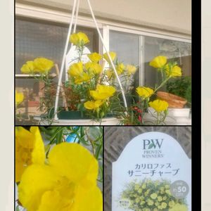 🌼カリロファス 去年発売後すぐ買ったけど花が続かず、しょもしょもで終わった。 冬越ししたらたくさん咲き出した。今年の夏こそ頑張ってもらいたい。 長く垂れがちなのでちょっとずつ✂️切り詰めてモコフワにしたい。