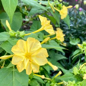 黄色いオシロイバナが 綺麗に咲いてます〜❣️ 蕾もいっぱい❣️ 夕方散歩にもう一度 会いに来ようかなぁ🎶❣️🎶❣️🎶